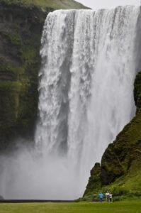 Verderop, aan de kust, namen we een kijkje bij de 60 meter hoge waterval Skógafoss. Volgens de legende verborg de kolonist Thrasi hier een kist vol goud onder de waterval. Even goed speuren dus! Via Skógar bezochten we de rotsklomp Dyrhólaey, waarvan een smalle uitloper met een boogvormige opening de Atlantische Oceaan insteekt. Op de 120 meter hoge kaap die boven het zwarte strand uittorent, bevinden zich broedkolonies van verschillende soorten zeevogels. In de zomermaanden kun je hier veel papegaaiduikers zien. We eindigden de dag in het plaatsje Vík.